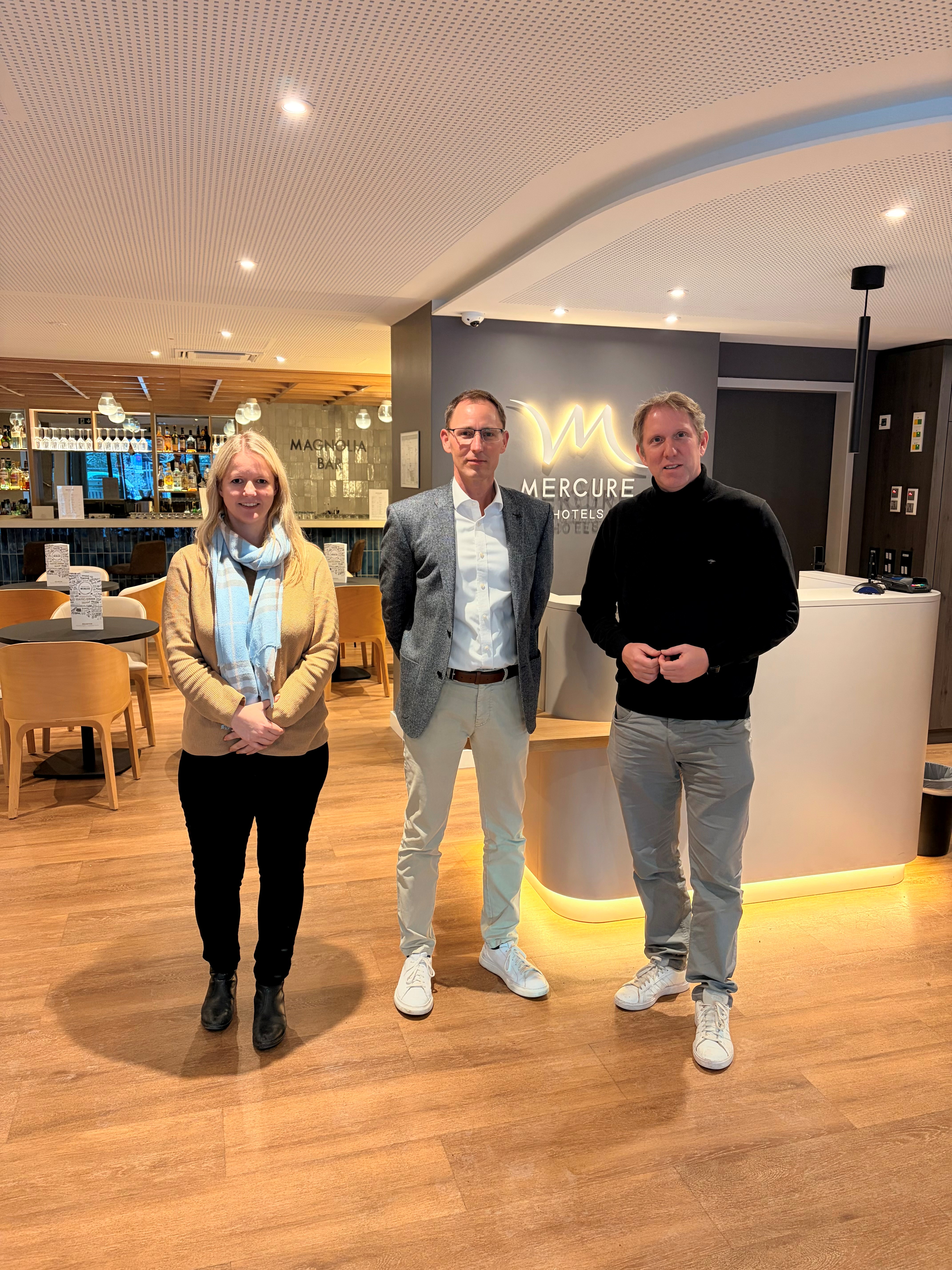 Wie sieht das Mercure Parkhotel Mönchengladbach nach der umfangreichen Renovierung aus? Was bewegt die Branche insgesamt in unserer Stadt? Darüber haben sich die beiden Landtagsabgeordneten Vanessa Odermatt und Jochen Klenner mit Hans-Joachim Oettmeier ausgetauscht. Er ist Direktor des Mercure-Hotels und außerdem Vorsitzender des Hotel- und Gaststättenverbands (DEHOGA) in Mönchengladbach.