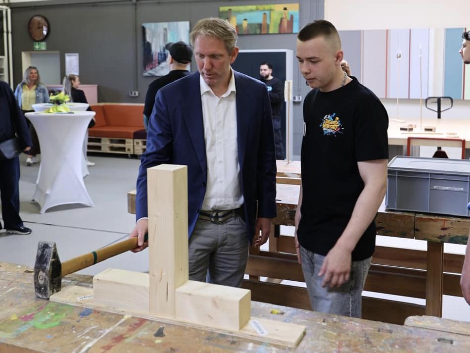 Beim Tag der offenen Tür in der Jugendwerkstatt, Kuhle 8 hat Jochen Klenner hautnah erlebt, wie junge Menschen ganz praktisch ins Berufsleben hineinwachsen. Sie bauen im Bereich Handwerk & Gestaltung eigene Projekte, schneiden und stylen im Bereich Beauty & Hair, planen und kochen in der Hauswirtschaft – und organisieren im neuen Bereich Lagerlogistik & Beschaffung Waren, Abläufe und Strukturen.